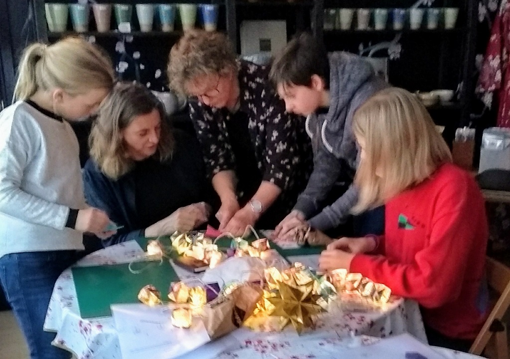 Inmiddels geeft Anne met enthousiasme workshops, waar ze groepen lichtsnoeren, lampjes, kraanvogels en nog veel meer, leert vouwen.